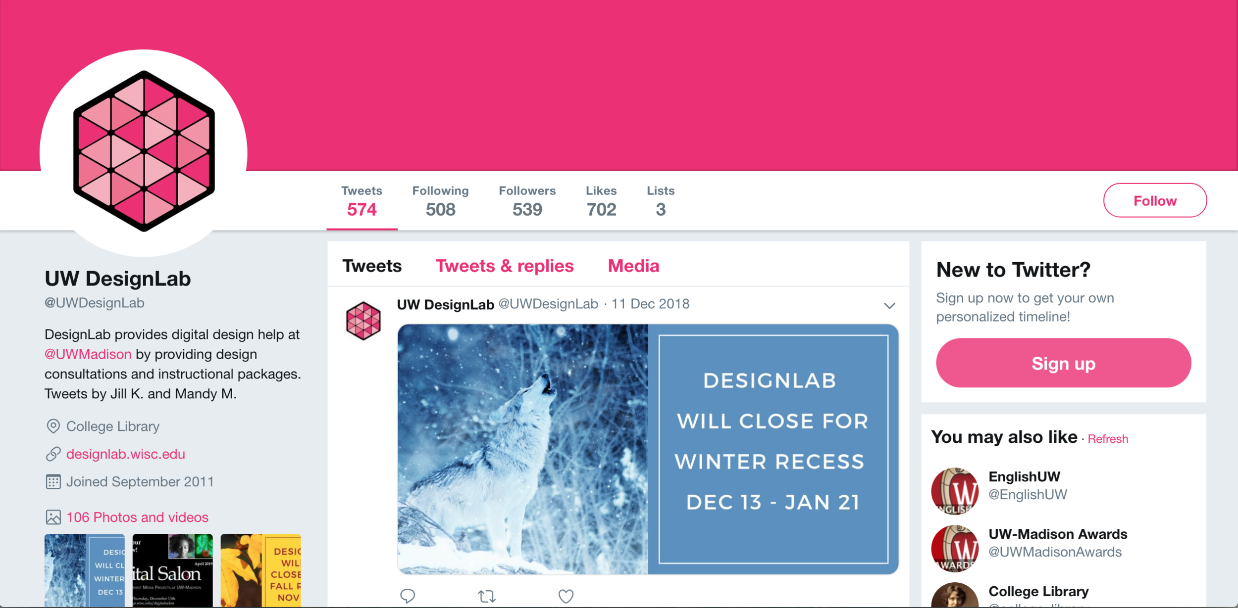 I created and managed the UW-Madison Theatre for Youth website until 2017. I also created and maintained the TFY Facebook and Twitter until 2017.